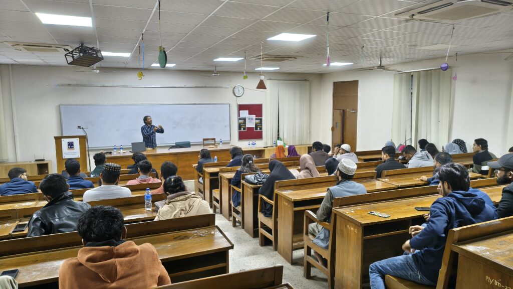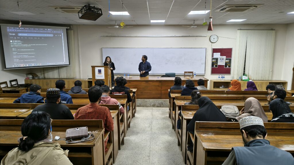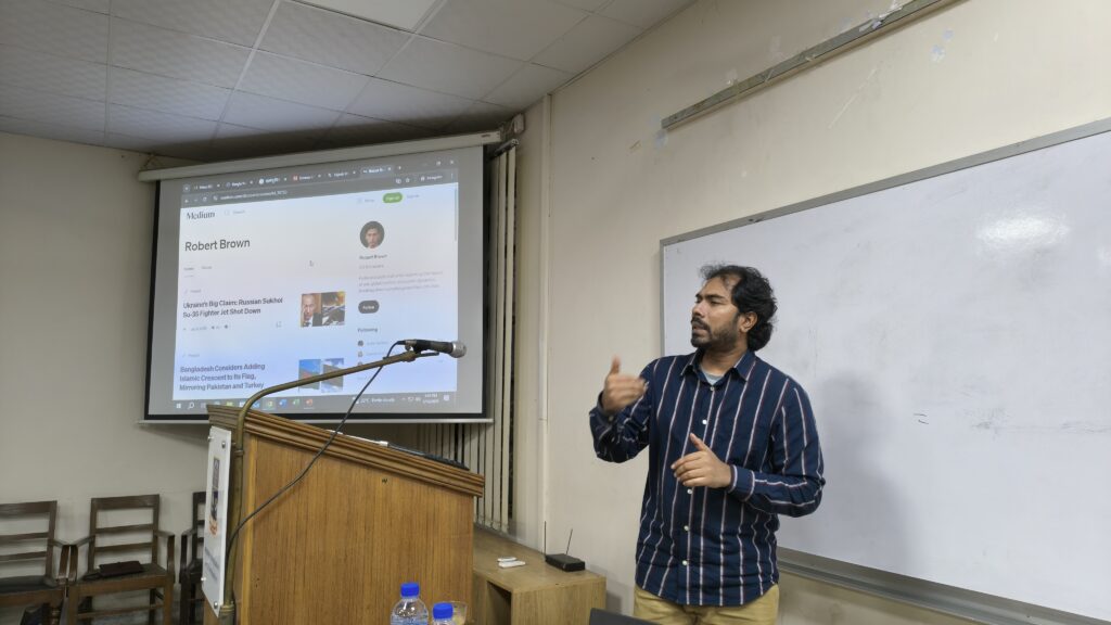 Following this, Qadaruddin Shishir, Editor of The Dissent, led the second session, where he provided hands-on insights into fact-checking techniques. He demonstrated practical tools for verifying news, images, and viral social media content, and encouraged students to critically evaluate information before sharing it online.
