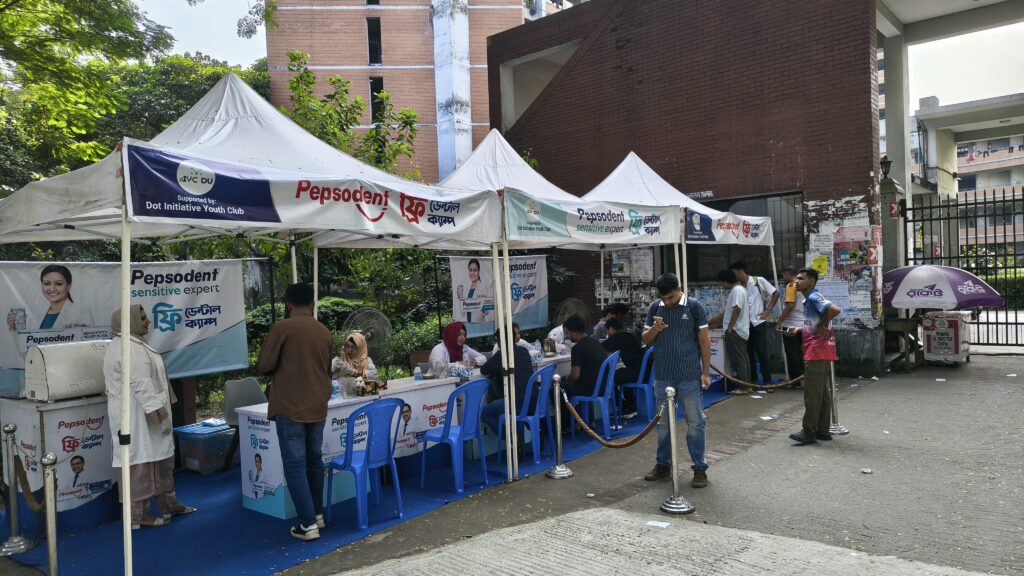 আজ, ২০ অক্টোবর ২০২৫, বিজয় একাত্তর হলে সফলভাবে সম্পন্ন হয়েছে Pepsodent Free Dental Camp, যা আয়োজন করেছে Dot Initiative Youth Club, Dhaka University ।
